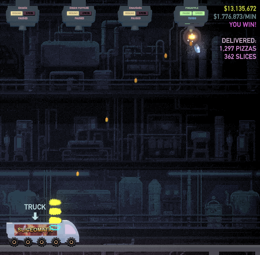 Very epic my truck was filled with tomato paste and cheese without pizza because the dough is very hard to crush at turbo speed. Thankfully someone is buying cooked cheese at negative profit margins
